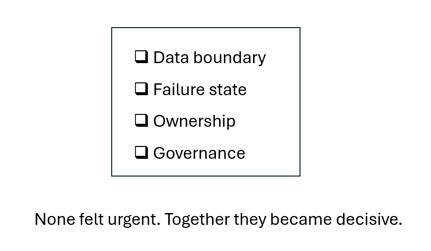 A product team once presented a polished dashboard for a new feature. Stakeholders liked it. Engineering asked how the data would be governed across regions. No one owned the answer. The demo lived on. The feature did not.