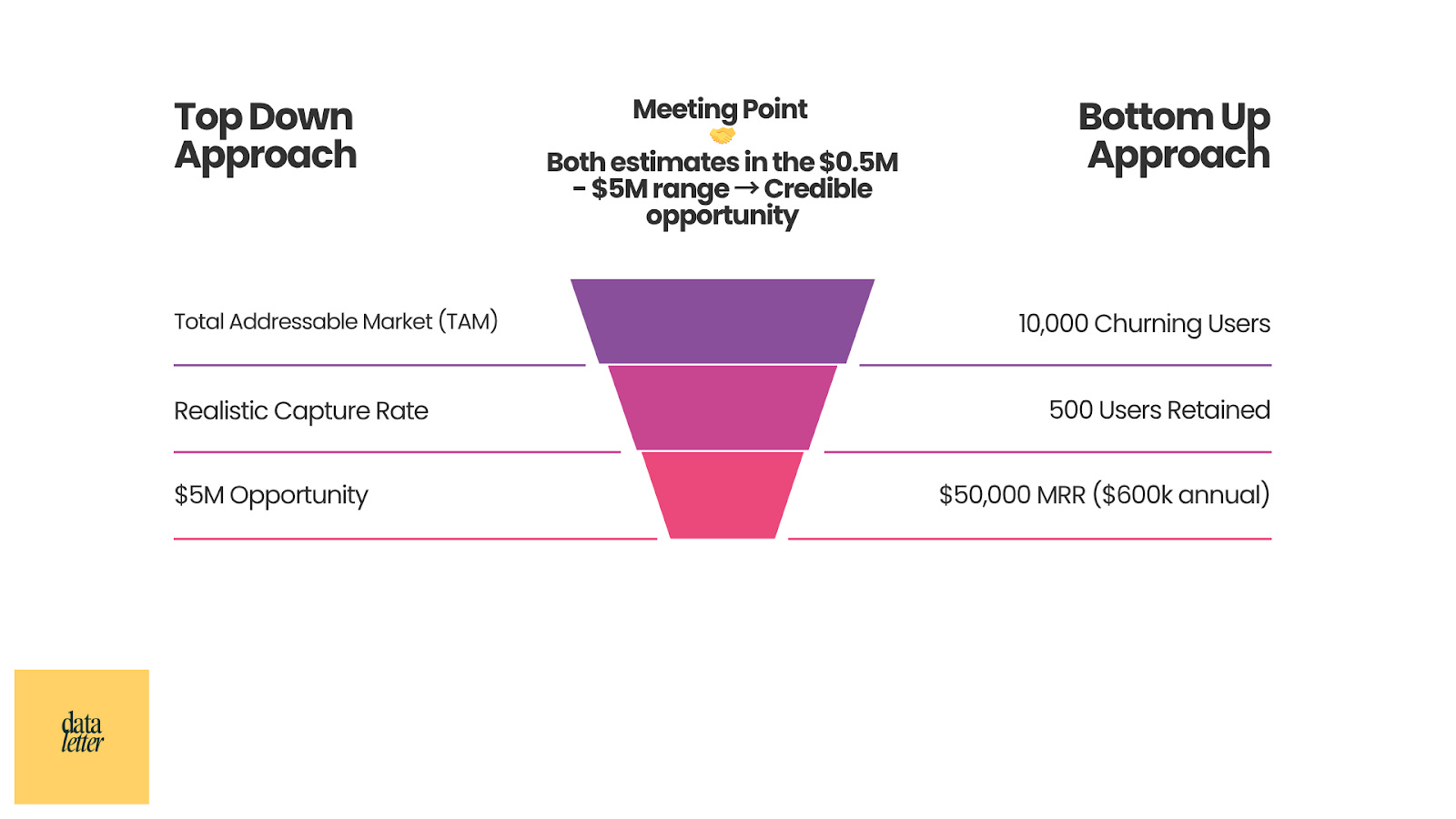 When your top-down and bottom-up estimates align in scale, they build a compelling, defensible case, transforming a guess into a calculated opportunity.