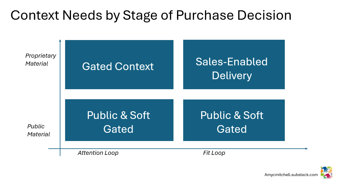 This is where modern product communication becomes architectural: you must decide what the market can see, what AI can classify, and what only serious buyers can access.