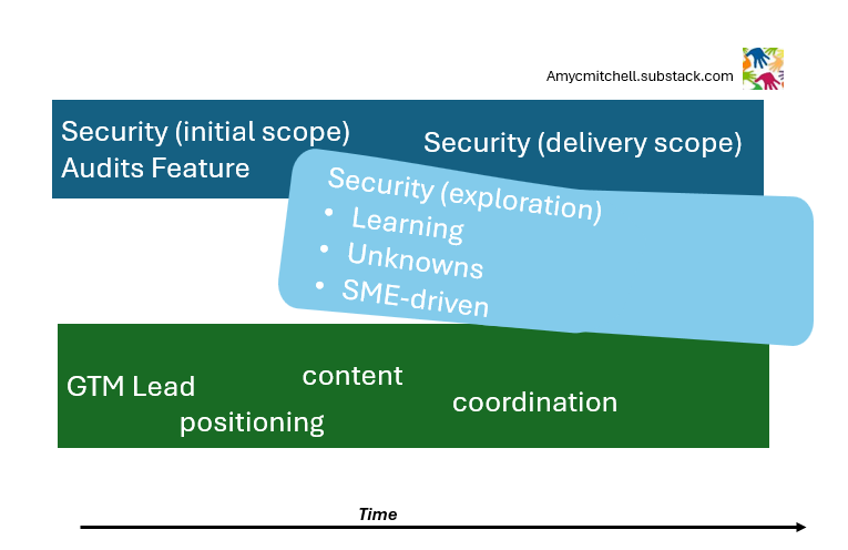 With Alex underwater in security, GTM discussions shift toward other priorities. New asks appear across his domains. The simple feature is no longer simple, the context has moved, and Alex feels behind everywhere at once.